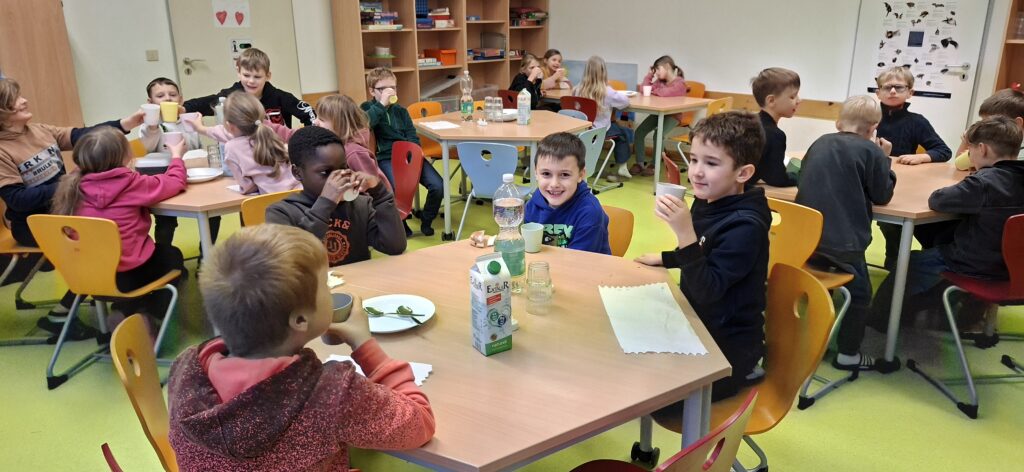 Mit einem gemütlichen Start begrüßten die Kinder das neue Jahr. Gemeinsam wurden Eiserkuchen gebacken und anschließend mit Kiba und Apfelschorle angestoßen. In entspannter Atmosphäre kamen alle wieder zusammen und starteten gut in die Zeit nach den Weihnachtsferien.