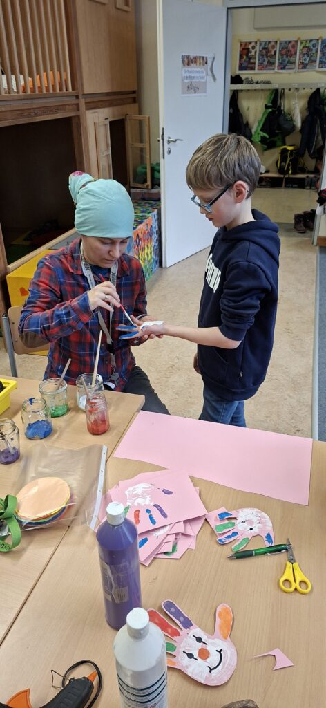 Im Ganztag wurde es kreativ und bunt. Die Kinder gestalteten Dekorationen und kleine Kunstwerke rund um Karneval. Mit eigenen Ideen und viel Freude entstanden farbenfrohe Ergebnisse, die die Vorfreude auf das Fest steigerten.