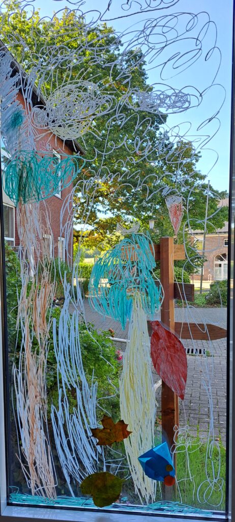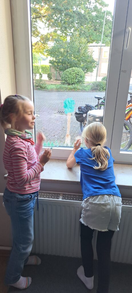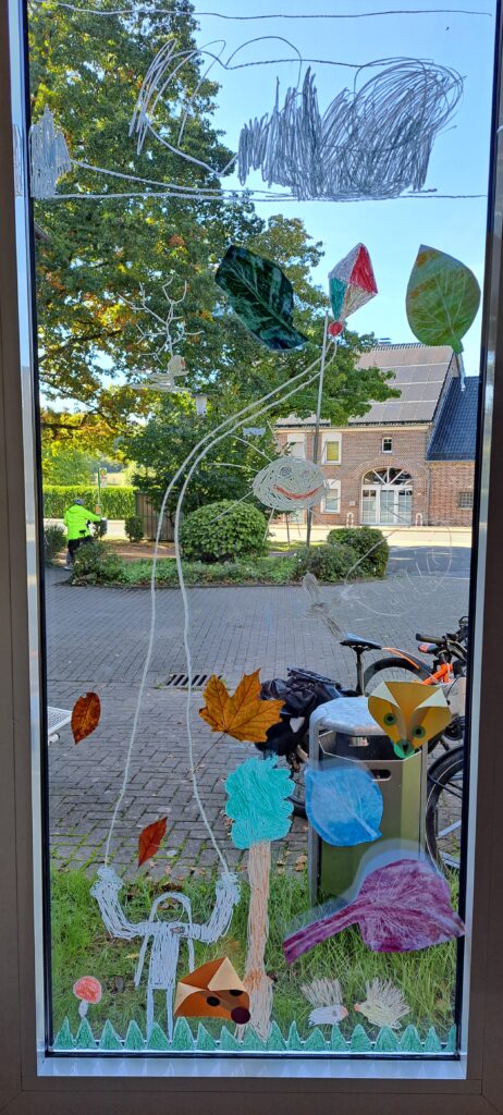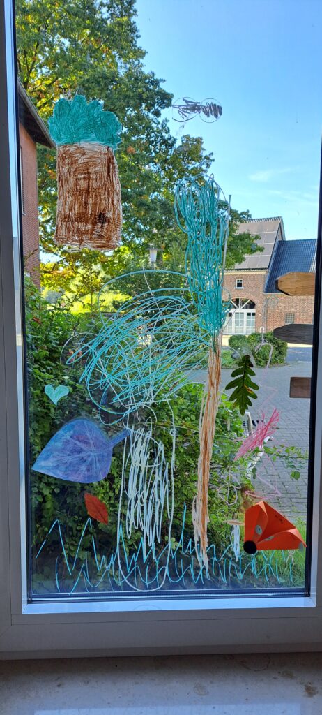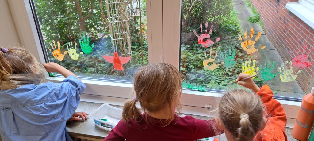 Mit bunten Stiften und Fingerfarben entstehen Herbstbilder an den Fenstern 🍁✏️