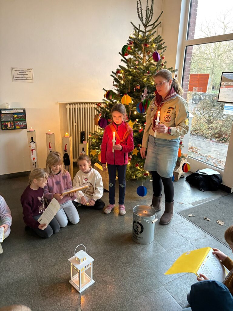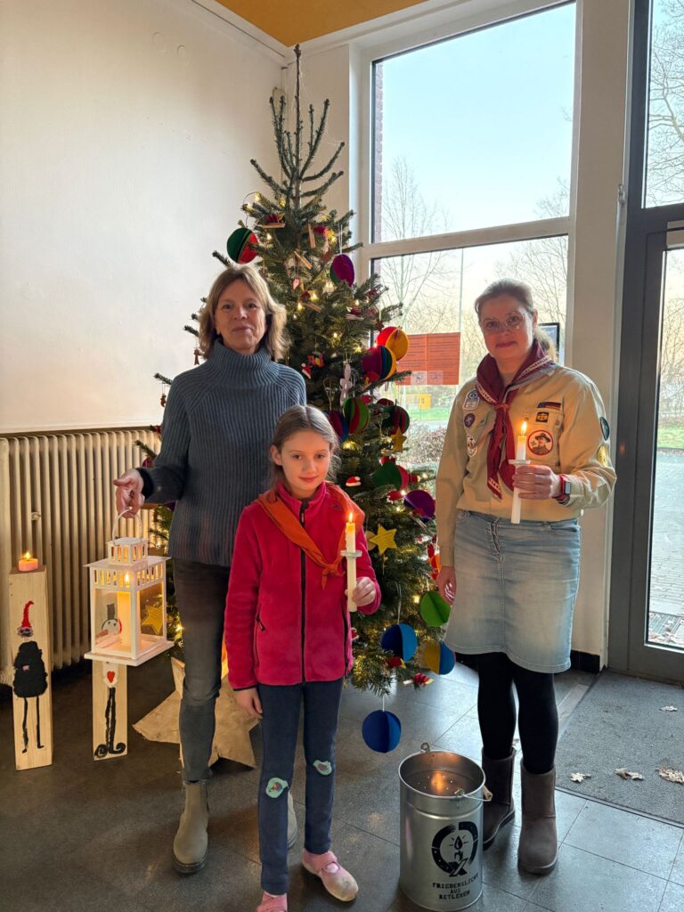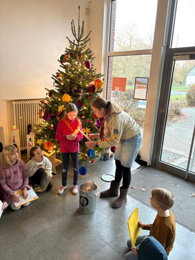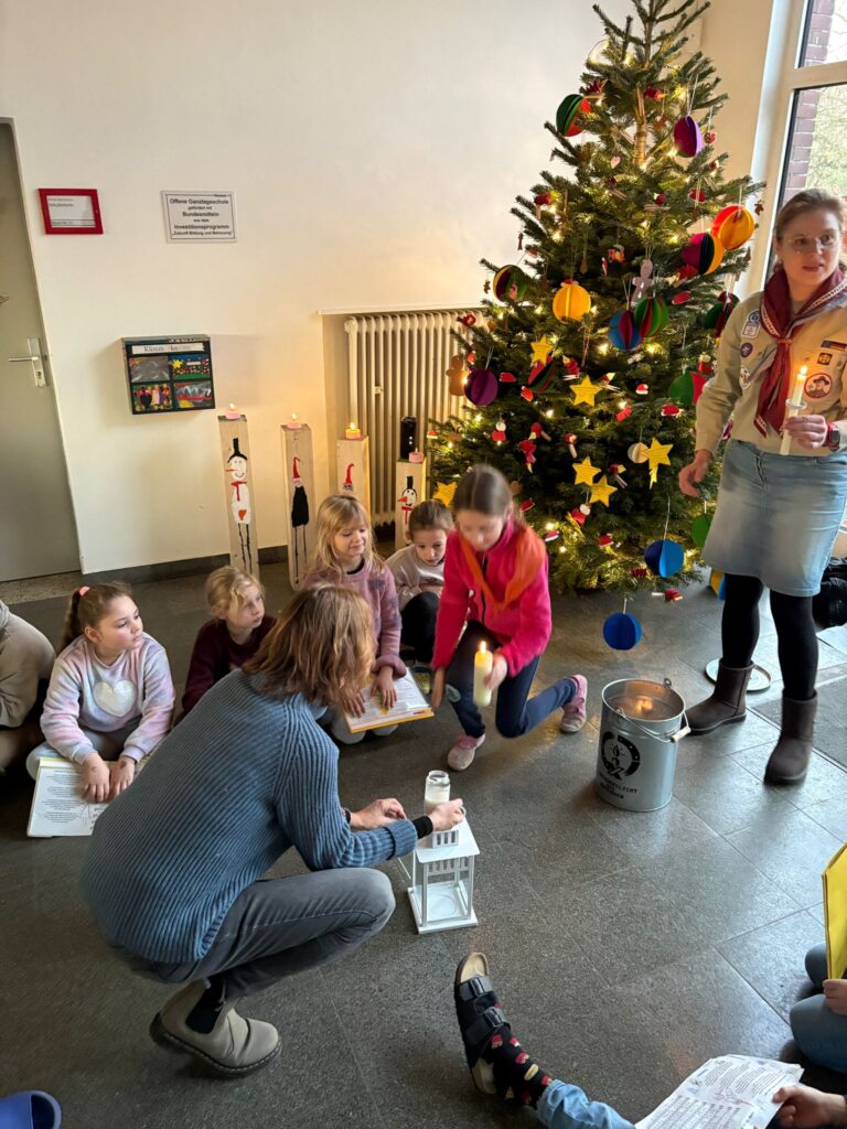 Ein ganz herzlicher Dank gilt Frau Lemke, die das Friedenslicht auch in diesem Jahr wieder zu uns in die Schule gebracht hat. Gemeinsam mit Frieda aus dem 3. Jahrgang sorgte sie für einen ruhigen, eindrucksvollen Moment. Ebenso danken wir den Pfadfindern Hamm-Berge, die das Friedenslicht Jahr für Jahr weitertragen und es möglich machen, dass dieses besondere Zeichen auch bei uns leuchten darf. Ohne dieses Engagement würde das Friedenslicht seinen Weg nicht in so viele Schulen und Familien finden. 🕊️