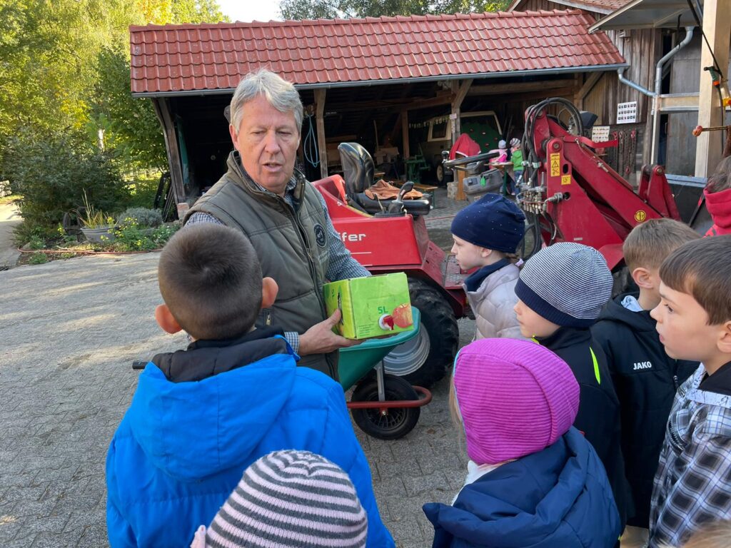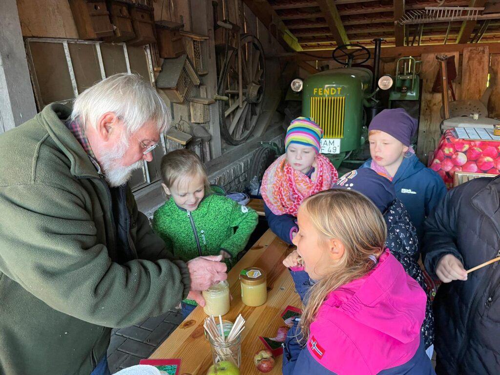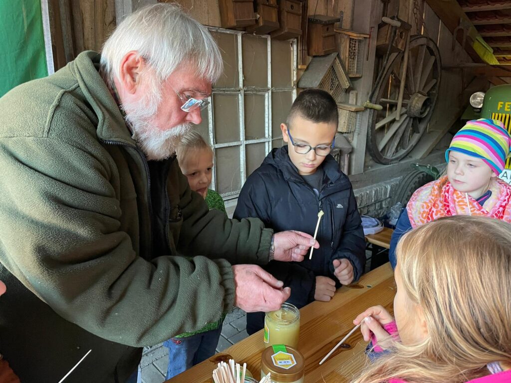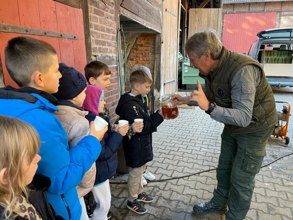 Ein weiteres Highlight war der Besuch eines Imkers. Er erklärte anschaulich, wie Bienen arbeiten, warum sie für die Bestäubung so wichtig sind und wie dadurch im Herbst die Apfelbäume ihre vielen leckeren Früchte tragen.