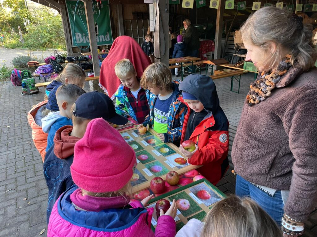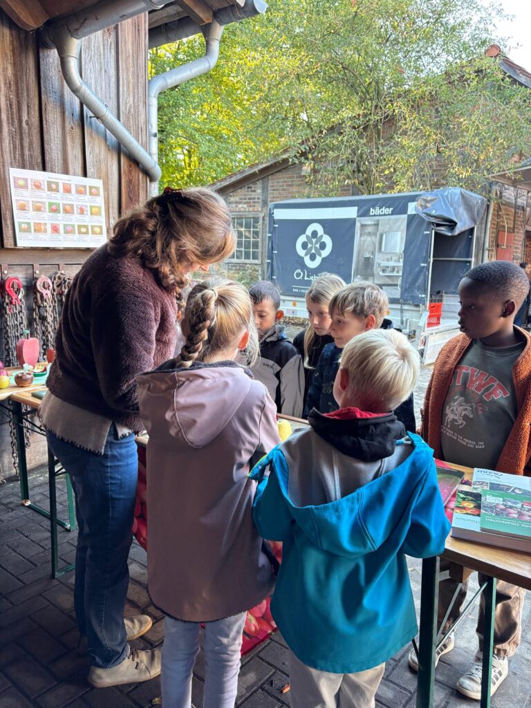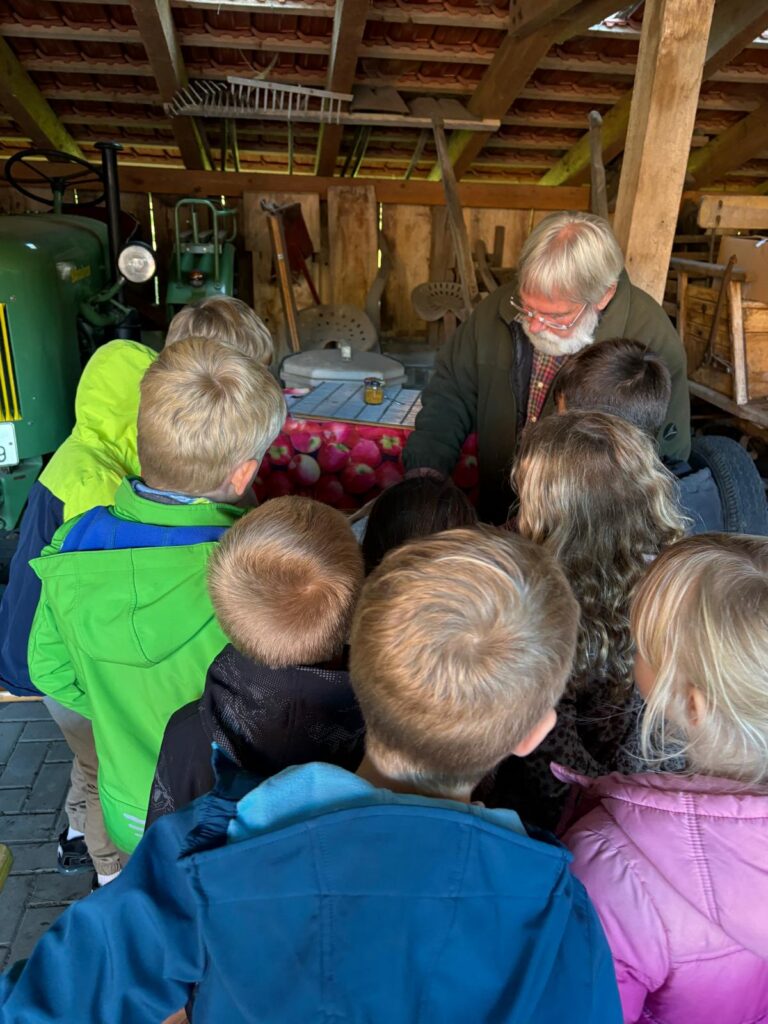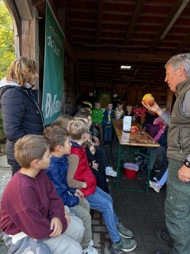 Gestern durfte der zweite Jahrgang der Hellwegschule bei strahlendem Sonnenschein einen ganz besonderen Tag erleben: den Apfeltag auf dem Biohof Frölich.