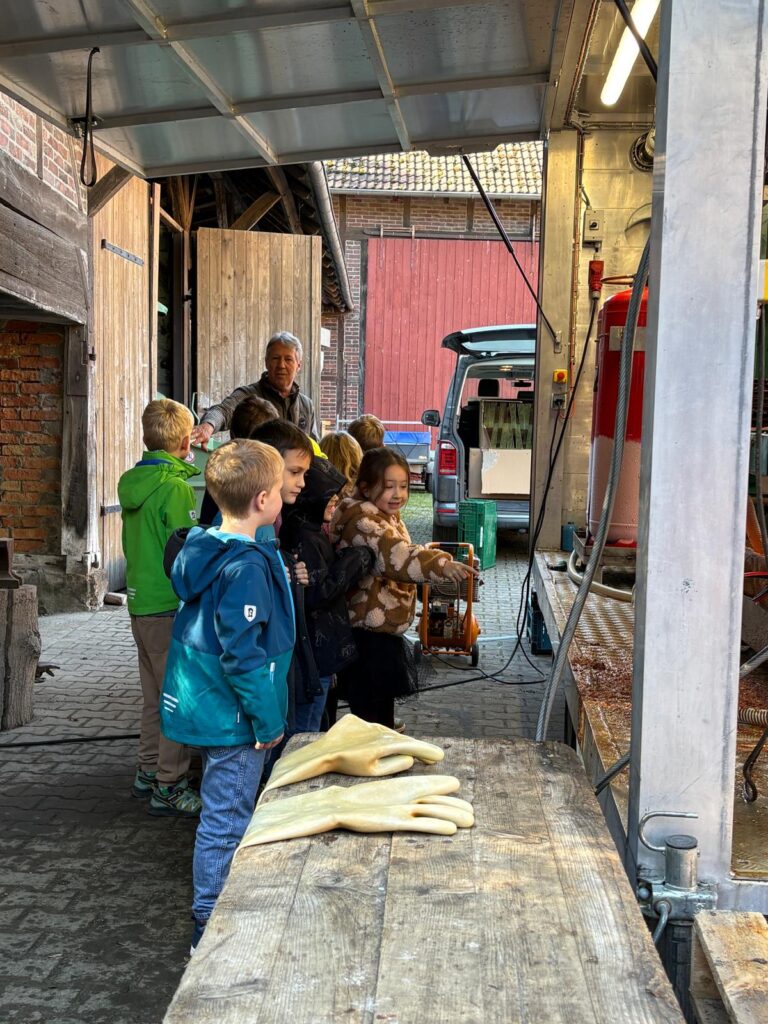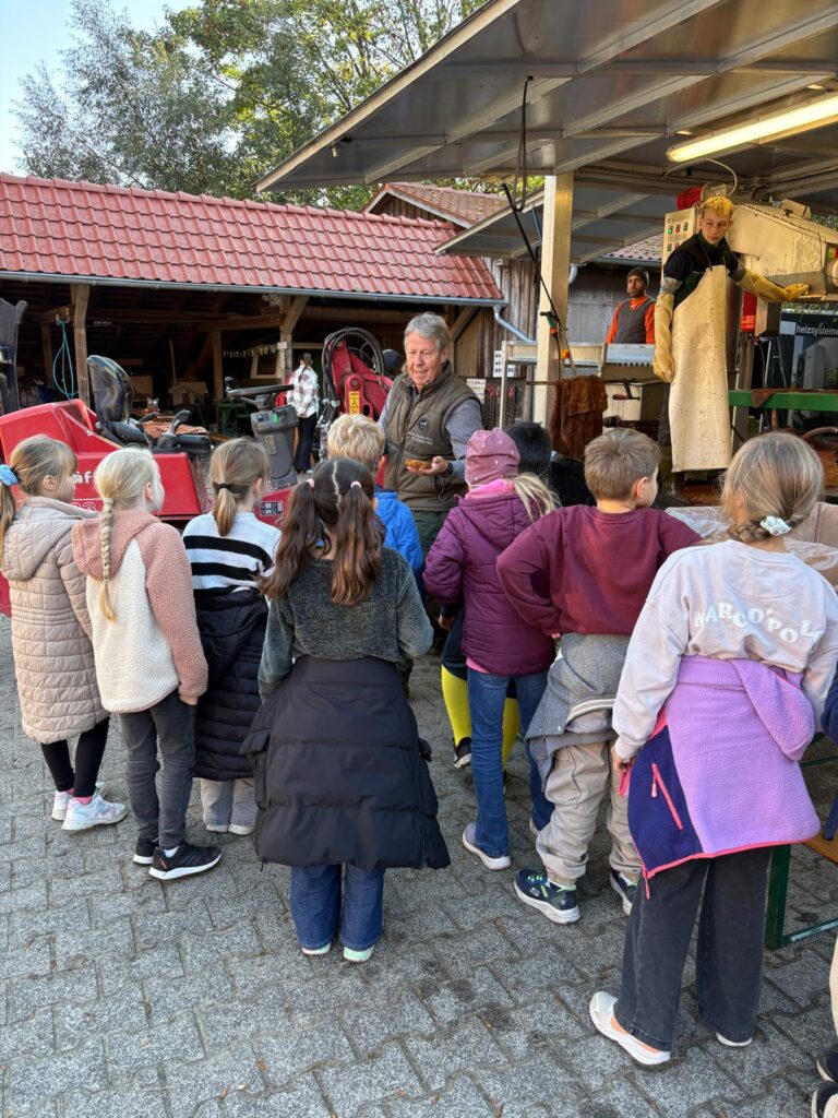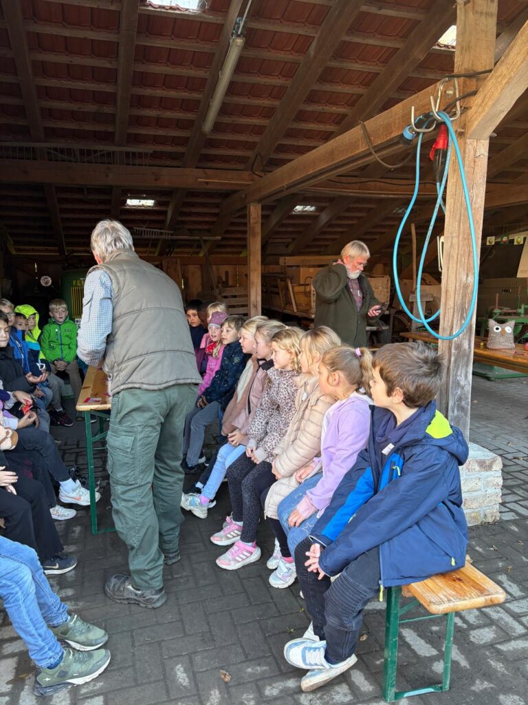 Der Verein „Landliäben“ war zu Gast und zeigte uns eindrucksvoll, wie die Menschen früher das Korn gedroschen haben. Dieser Verein setzt sich für die Förderung von landwirtschaftlichen Traditionen und das Bewusstsein für das Leben auf dem Land ein. Durch spannende Demonstrationen und interaktive Erlebnisse vermitteln sie Wissen und Freude an der Natur und in der Landwirtschaft. Die Kinder standen gebannt da, ihre Augen leuchteten vor Neugierde und Begeisterung, als sie die alten Techniken und Werkzeuge entdeckten, mit denen die Ernte früher eingefahren wurde.