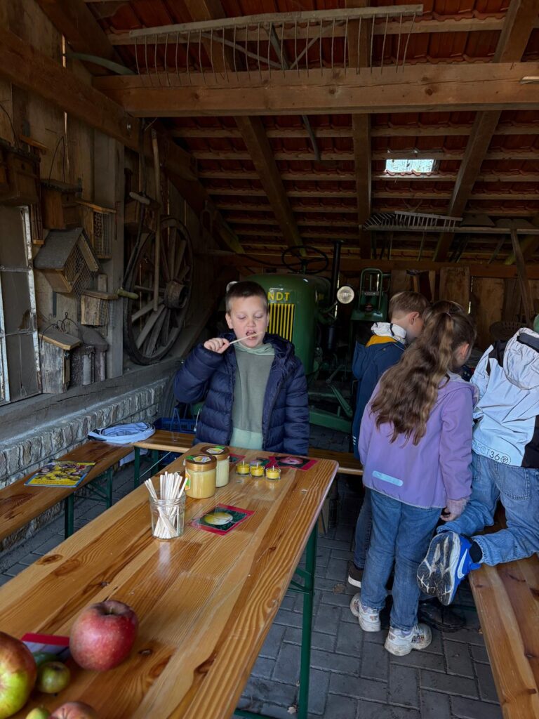 Besonders erfreulich war es, dass auch die Bienen an diesem Tag zu Gast waren. Wir lernten viel über die wichtigen Tiere der Natur und durften sogar Honig-Crêpes probieren – ein süßes Vergnügen!