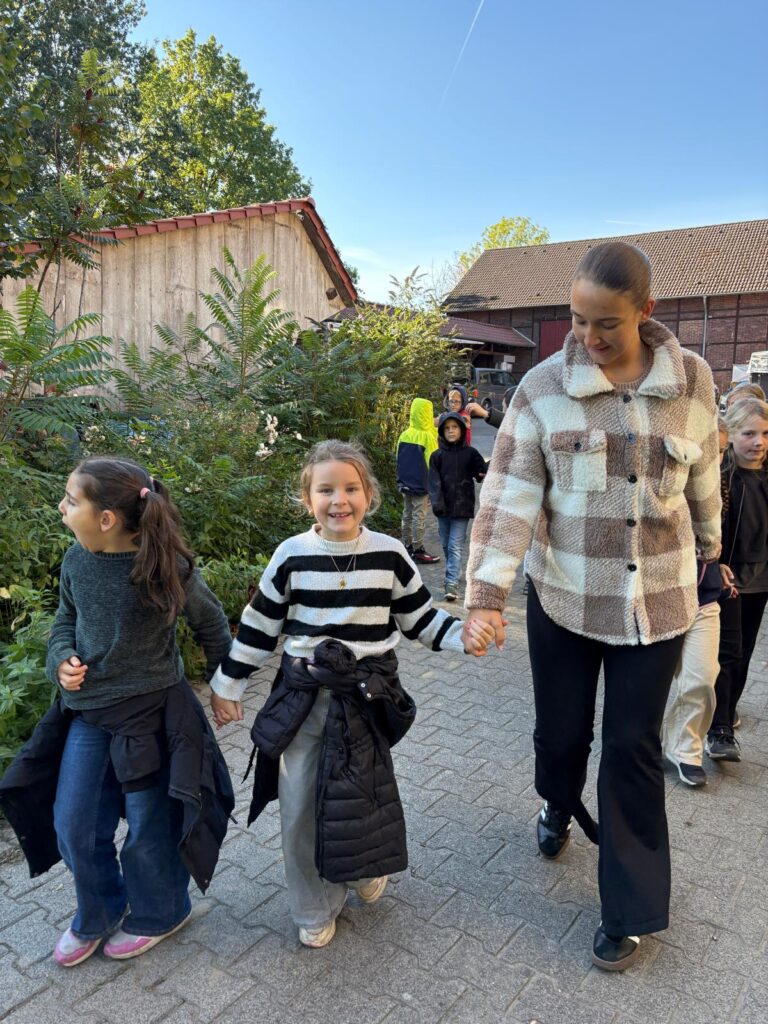 Schon bei der Ankunft wurden wir von Herrn Lülf und Frau Melone sehr freundlich begrüßt. Organisiert wurde der Tag durch Herrn Lülf vom Verein Landliäben Hamm, der sich mit zahlreichen Projekten für Naturpädagogik, Umweltbildung und regionale Landwirtschaft einsetzt. Ziel des Vereins ist es, Kindern und Jugendlichen die Natur näherzubringen, nachhaltiges Handeln zu fördern und Erlebnisse auf Höfen und in der Landwirtschaft zu ermöglichen.🌞🌿