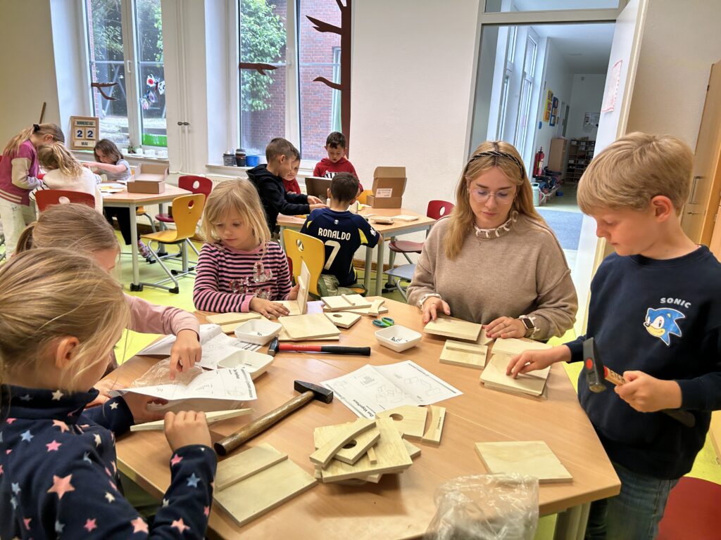 Ein weiteres Highlight war der Besuch eines Imkers. Er erklärte anschaulich, wie Bienen arbeiten, warum sie für die Bestäubung so wichtig sind und wie dadurch im Herbst die Apfelbäume ihre vielen leckeren Früchte tragen.
