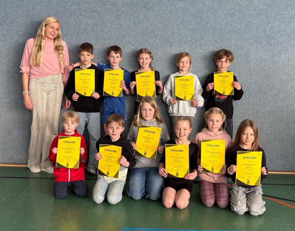 Hamm’s schnellste Schule! Unsere Schule hat mit Bravour den Titel „Hamm’s schnellste Schule“ gewonnen. Ja, ihr habt richtig gehört! Mit einem Einsatz von über 40 Kindern, die ihre Urkunden förmlich zum Glühen gebracht haben, haben wir diesen großartigen ersten Platz errungen. Ein großer Applaus an alle kleinen Blitzschnellen!