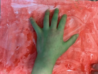 Im Mittelpunkt stand das Erkunden verschiedener Gestaltungsmöglichkeiten. Die Kinder spachtelten breite Farbflächen. Sie setzten schmale Kanten gezielt ein. In frische Farbe zogen sie Furchen und Linien und veränderten so Struktur und Wirkung der Flächen.